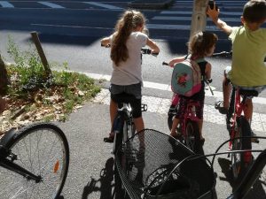 Amikor a nyár közepén találtunk egy megfelelő lakást, amit ki is vettünk, akkor következhetett csak a gyerekek beíratása az iskolába, óvodába. Ezek ugyanis nem választhatóak, a lakhely szerintibe osztja be őket az önkormányzat, és oda kötelesek is felvenni őket. Szóval nagy válogatást és utánajárást nem igényelt, és ezen felül az is jó benne, hogy biztosan ez a legközelebbi, szóval egy rövid sétával, vagy pár perc biciklizéssel ott vagyunk. Arról nem is beszélve, hogy nem kell feltétlen kísérgetni őket, ha úgy adódik, simán el tudnak menni egyedül (az óvodás is menne, de őt meg mi nem engedjük.), ami a régi (autóba ülünk – hajtunk a suliba – dugóban állunk – parkolóhelyet keresünk – esetleg találunk – sokat fizetünk érte – visszafele ugyanez) életmódunk után a megváltás!