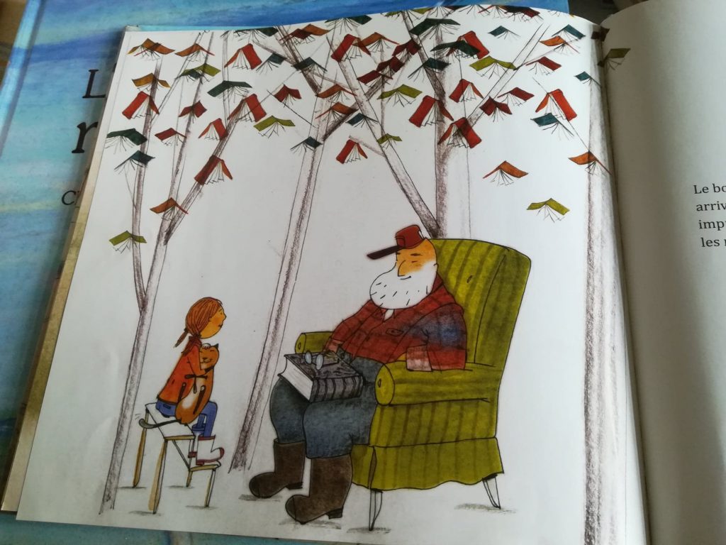 S a nagypapa elmondja, hogy a kivágott fa leúszik a folyón, eljut a malomba, ahol porrá zúzzák és vízzel keverik, áztatják, kipréselik, szárítják, fölgöngyölik, felvágják, nyomtatják, bekötik… és egy nagy könyv lesz belőle…, amely lehetővé teszi, hogy az emberek újrakezdjék a jövőjüket.