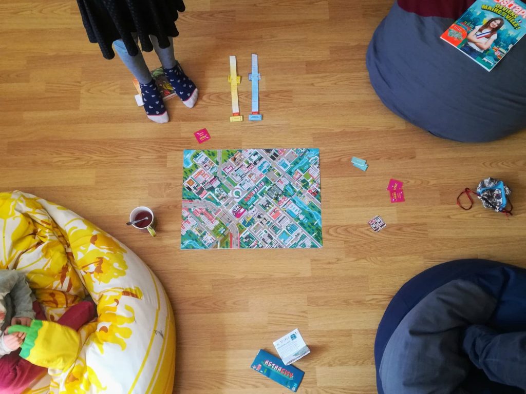 Aztán, ha már ilyen szép rend lett, és ezzel nagy, és tiszta hely is, leültünk játszani azzal a társassal, ami a Bendi havilapjának mostani számával érkezett épp a héten. Kivagdosta még hétközben, de eddig nem volt idő játszani vele. Na de most.