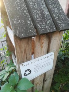 De a legjobb, ez a másik bódé ugyanitt, ezzel a felirattal: “Több zöldsége, gyümölcse van, mint amit elfogyaszt? Mielőtt hagyná megromlani, vagy mielőtt elutazna a hétvégére, tegye le ide, lesznek, akik örülni fognak neki!”